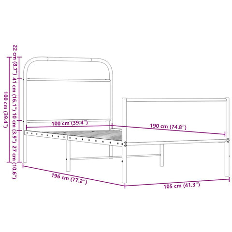 Bed Frame without Mattress 100x190 cm Brown Oak Engineered Wood 4100494