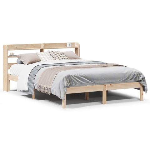 Enjoy a good night's sleep in this wooden bed frame! It makes a practical and decorative addition to your interior. Solid pine wood: Solid pine wood is a beautiful natural material. Pine wood has a straight grain, and the knots give the material its signature, rustic look.Practical slats: The slats provide good weight distribution, ensuring your mattress with much-needed support and breathability.Ample storage space: This sleek headboard of the bed features two convenient shelves, offering ample storage space to keep all your nighttime essentials within easy reach.Freestanding headboard: The freestanding headboard offers a hassle-free solution for effortless placement and repositioning without the need for wall installation. Good to know: A mattress is not included with this bed. We do offer a various selection of mattresses. You can check our shop for a matching mattress.