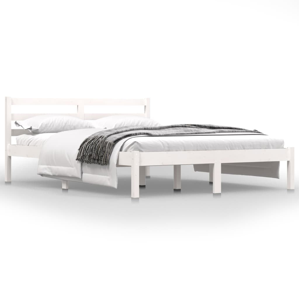 Take the modern route to your bedroom with this wooden bed frame! It makes a practical and decorative addition to your interior. Premium solid wood: Solid pine wood is a beautiful natural material. Treat the surface with oil, wax, lacquer, or a glazing finish for a stronger surface and easy cleaning. Pine wood has a straight grain, and the knots give the material its signature, rustic look.Sturdy bed frame: The wooden bed frame is specially designed with sturdy slats that can offer the needed support and comfort.Comfortable headboard: The classic headboard let you rest comfortably while reading or watching a movie. Note:The delivery includes a bed frame only. The mattress is not included. You can check our shop for the matching mattresses.This bed frame is suitable for a mattress measuring 135 x 190 cm (4FT6 Double).