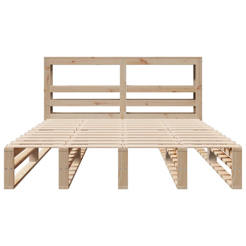Enjoy a good night's sleep in this wooden bed frame! It makes a practical and decorative addition to your interior. Stable and long-lasting frame: Solid pinewood is known for its strength and durability. Its straight grains and distinctive knots contribute to its rustic charm.Ample storage space: This sleek headboard features convenient shelves, offering ample storage space to keep all your nighttime essentials within easy reach.Versatile headboard: This double bed frame comes with a headboard that provides excellent back support when you sit up in bed to read or watch TV, while also serving as a decorative element.Slatted base for optimal support: The bed base is equipped with a slatted base for support and breathability for your mattress. Good to know:A mattress is not included with this bed. We do offer a various selection of mattresses. You can check our shop for a matching mattress.
