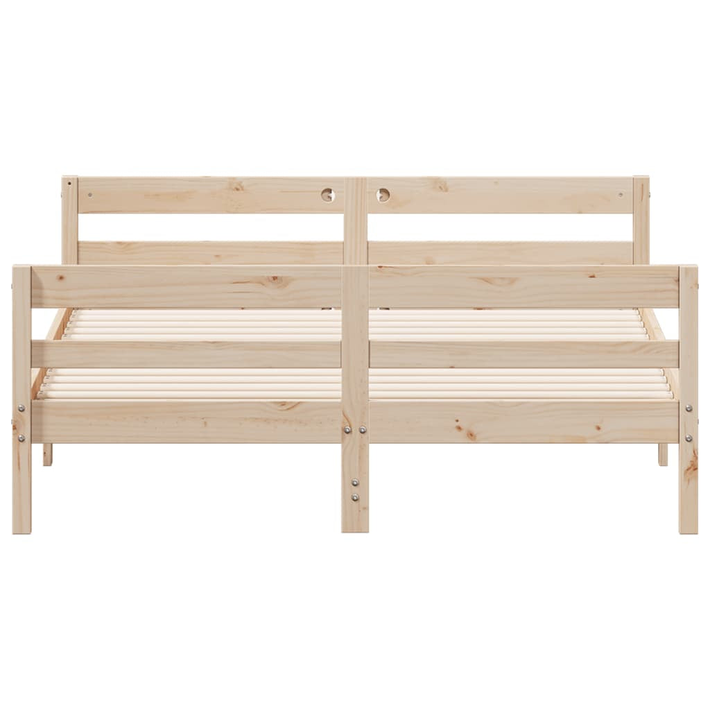 Enjoy a good night’s sleep in this wooden bed frame! It makes a practical and decorative addition to your interior. Solid pine wood: Solid pine wood is a beautiful natural material. Pine wood has a straight grain, and the knots give the material its signature, rustic look.Plywood slats: The plywood slats provide good weight distribution, ensuring that the mattress stays in place with every twist and turn of your body during sleep.Functional headboard and footboard: The headboard and footboard of the wooden bed can keep your mattress in place. Also, the headboard provides you with excellent back support when you sit up in bed to read or watch TV. Good to know:Mattresses are not included with this bed. We do offer a various selection of mattresses. You can check our shop for matching mattresses.