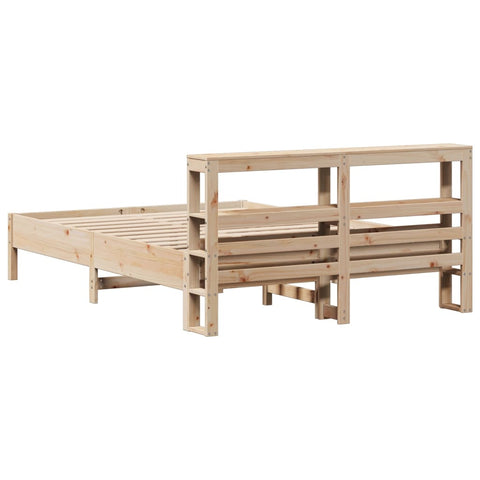 Get a better restful night's sleep from this bed frame! It makes a welcoming addition to any bedroom. Stable and long-lasting frame: Solid pinewood is known for its strength and durability. Its straight grains and distinctive knots contribute to its rustic charm.Slatted base for optimal support: The bed frame is equipped with a slatted base for support and breathability for your mattress.Versatile headboard: This bed frame comes with a headboard that provides excellent back support when you sit up in bed to read or watch TV, while also serving as a decorative element.Ample storage space: This sleek headboard features two convenient shelves, offering ample storage space to keep all your nighttime essentials within easy reach. Good to know:A mattress is not included with this bed. We do offer a various selection of mattresses. You can check our shop for a matching mattress.