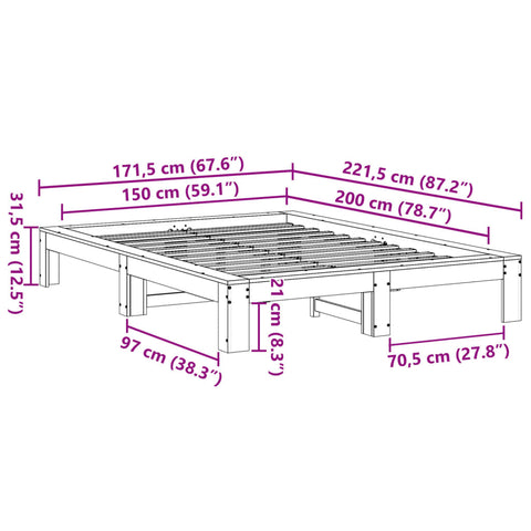 Bed Frame without Mattress 150x200 cm King Size Solid Wood Pine 3308735