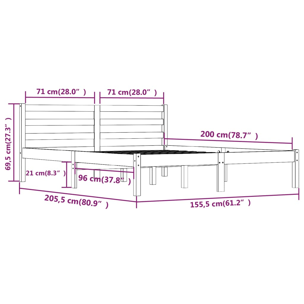 Take the modern route to your bedroom with this wooden bed frame! It makes a practical and decorative addition to your interior. Premium solid wood: Solid pine wood is a beautiful natural material. Treat the surface with oil, wax, lacquer, or a glazing finish for a stronger surface and easy cleaning. Pine wood has a straight grain, and the knots give the material its signature, rustic look.Sturdy bed frame: The wooden bed frame is specially designed with sturdy slats that can offer the needed support and comfort.Comfortable headboard: The classic headboard let you rest comfortably while reading or watching a movie. Note:The delivery includes a bed frame only. The mattress is not included. You can check our shop for the matching mattresses.This bed frame is suitable for a mattress measuring 150 x 200 cm (5FT King Size).