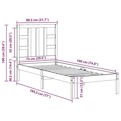Bed Frame without Mattress 75x190 cm Small Single Solid Wood 3105365