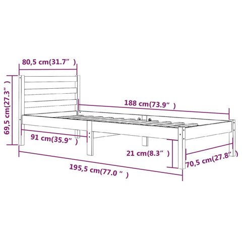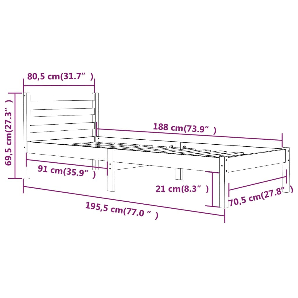 Take the modern route to your bedroom with this wooden bed frame! It makes a practical and decorative addition to your interior. Premium solid wood: Solid pine wood is a beautiful natural material. Treat the surface with oil, wax, lacquer, or a glazing finish for a stronger surface and easy cleaning. Pine wood has a straight grain, and the knots give the material its signature, rustic look.Sturdy bed frame: The wooden bed frame is specially designed with sturdy slats that can offer the needed support and comfort.Comfortable headboard: The classic headboard let you rest comfortably while reading or watching a movie. Note:The delivery includes a bed frame only. The mattress is not included. You can check our shop for the matching mattresses.This bed frame is suitable for a mattress measuring 75 x 190 cm (2FT6 Small Single).