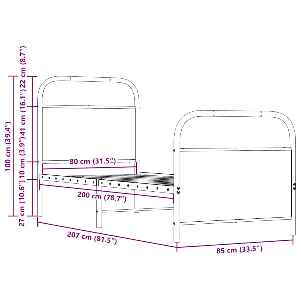 Bed Frame Without Mattress 80x200 cm Sonoma Oak Engineered Wood 4100267