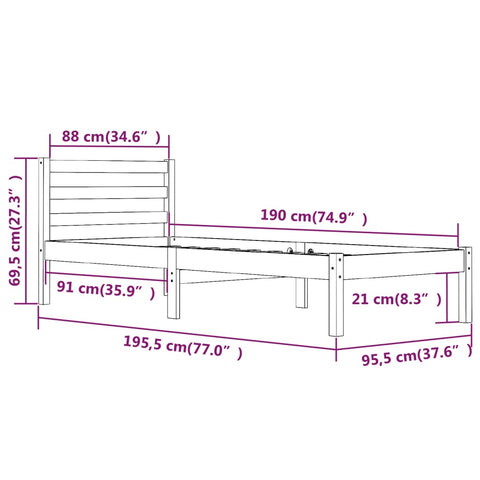 Take the modern route to your bedroom with this wooden bed frame! It makes a practical and decorative addition to your interior. Premium solid wood: Solid pine wood is a beautiful natural material. Treat the surface with oil, wax, lacquer, or a glazing finish for a stronger surface and easy cleaning. Pine wood has a straight grain, and the knots give the material its signature, rustic look.Sturdy bed frame: The wooden bed frame is specially designed with sturdy slats that can offer the needed support and comfort.Comfortable headboard: The classic headboard let you rest comfortably while reading or watching a movie. Note:The delivery includes a bed frame only. The mattress is not included. You can check our shop for the matching mattresses.This bed frame is suitable for a mattress measuring 90 x 190 cm (3FT Single).