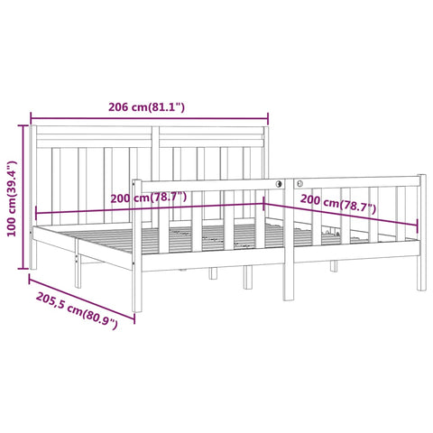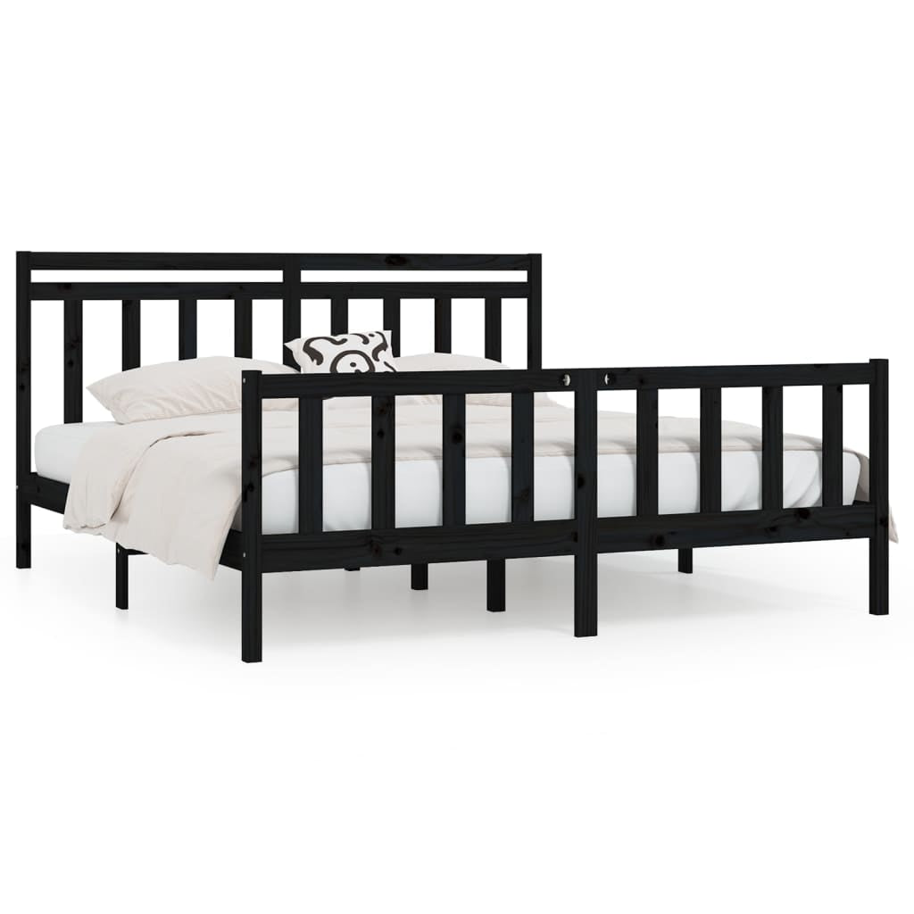 Bed Frame without Mattress Black Solid Wood Pine 200x200 cm 3107052
