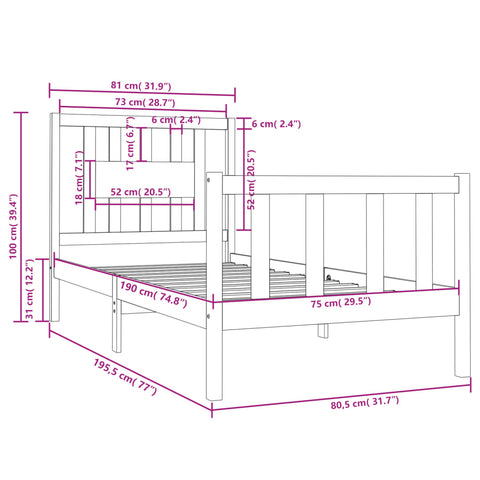 What is better than enjoying a good night's sleep at the end of a busy day? This classic wooden bed frame is the perfect choice for your bed and the first thing you want to relax after a long day. Premium solid wood: Solid pine wood is a beautiful natural material. Pine wood has a straight grain, and the knots give the material its signature, rustic look.Slats for additional support: The slats provide additional support for your bed. It extends the lifetime of your mattress by absorbing most of the stress and weight on the bed.Practical headboard: The headboard provides extra support, increasing the comfy level. Also, it can keep your pillows in place for better sleep. Good to know:The delivery includes a bed frame only. The mattress is not included. You can check our shop for the matching mattresses.Some headboard parts are packaged in the bed frame cartons due to space limitations.This bed frame is suitable for a mattress measuring 75 x 190 cm (2FT6 Small Single).