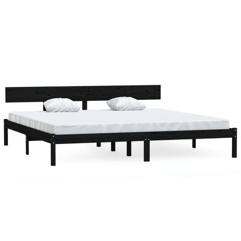 Bed Frame without Mattress Black Solid Wood Super King 810166