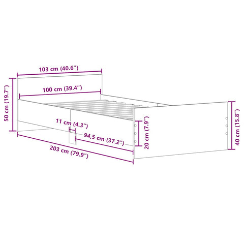Bed Frame without Mattress Brown Oak 100x200 cm Engineered Wood 835938