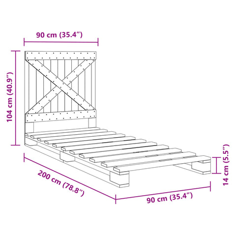 Bed Frame without Mattress Grey 90x200 cm Solid Wood Pine 3281580