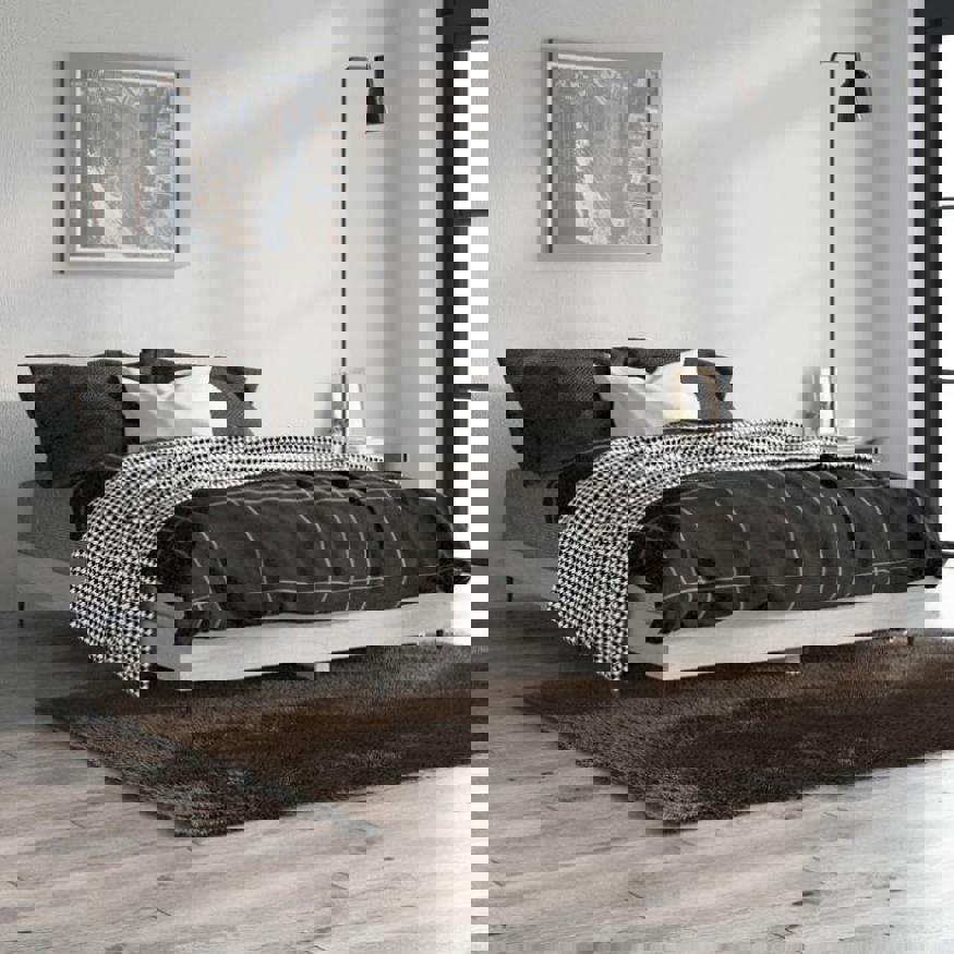 Get a better restful night's sleep from this bed frame! It makes a welcoming addition to any bedroom. Durable material: The engineered wood is of exceptional quality with smooth surface and also features strength, stability and resistance to moisture.Metal legs: The bed is supported by sturdy metal legs, which ensure its stability, safety and firmness.Plywood slats: The plywood slats provide good weight distribution, ensuring that the mattress stays in place with every twist and turn of your body during sleep. Good to know:A mattress is not included with this bed. We do offer a various selection of mattresses. You can check our shop for a matching mattress.