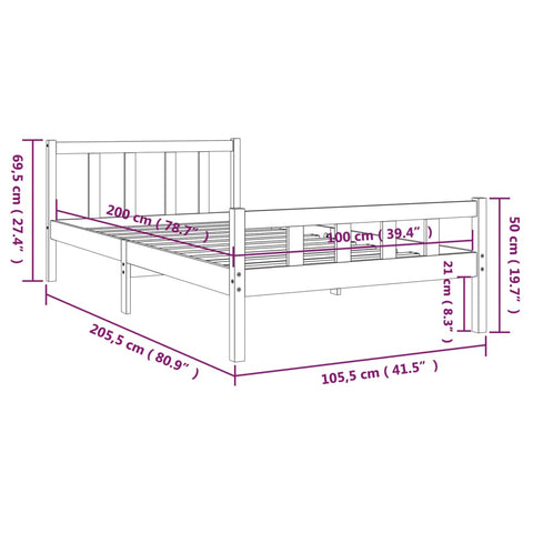 - Bed frame dimensions: 205.5 x 105.5 x 69.5 cm (L x W x H)