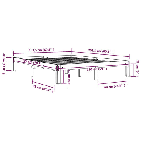 Bed Frame without Mattress Solid Wood 150x200cm King Size 810370