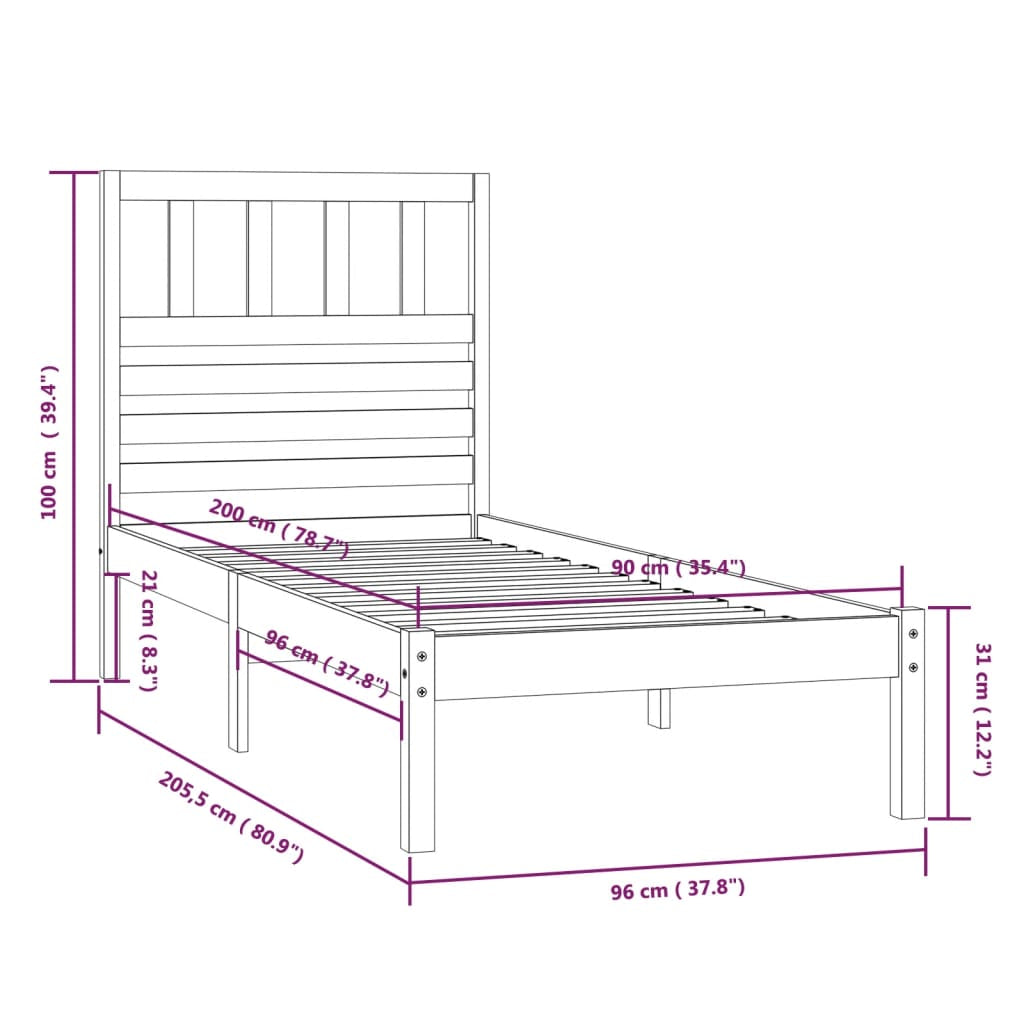 Bed Frame without Mattress Solid Wood Pine 90x200 cm 3101008
