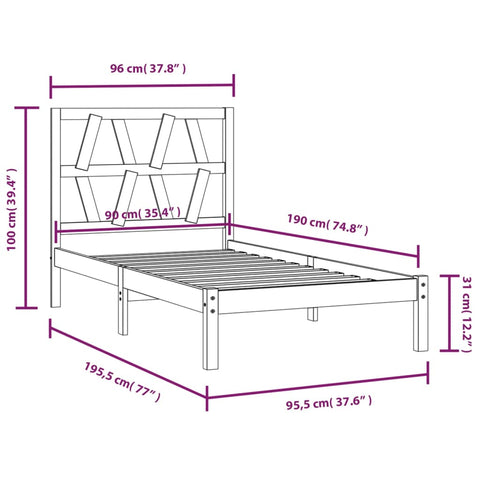- Dimensions of bed frame: 195.5 x 95.5 x 31 cm (L x W x H)