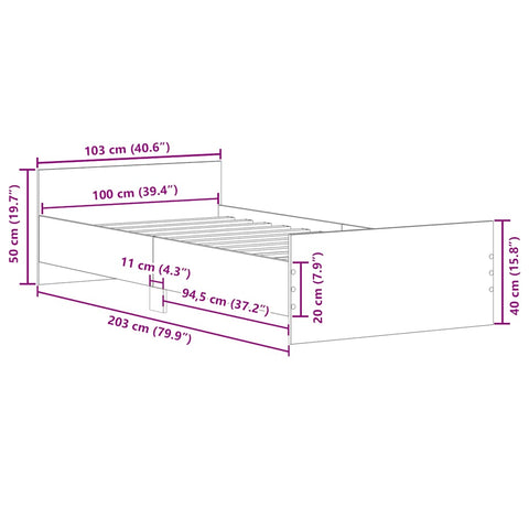 Bed Frame without Mattress Sonoma Oak 100x200 cm Engineered Wood 835934
