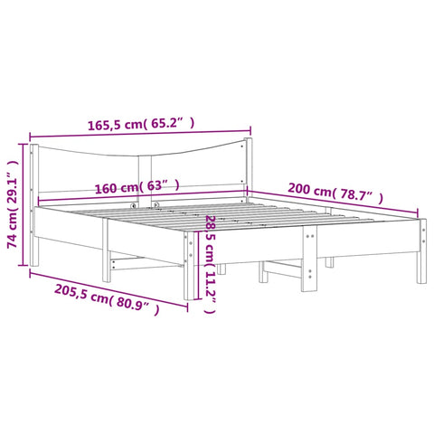 Bed Frame without Mattress Wax Brown 160x200 cm Solid Wood Pine 3216365
