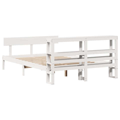 Enjoy a good night's sleep in this wooden bed frame! It makes a practical and decorative addition to your interior. Solid pine wood: Solid pine wood is a beautiful natural material. Pine wood has a straight grain, and the knots give the material its signature, rustic look.Plywood slats: The plywood slats provide good weight distribution, ensuring your mattress with much-needed support and breathability.Ample storage space: This sleek headboard of the bed features two convenient shelves, offering ample storage space to keep all your nighttime essentials within easy reach.Freestanding headboard: The freestanding headboard offers a hassle-free solution for effortless placement and repositioning without the need for wall installation. Good to know: A mattress is not included with this bed. We do offer a various selection of mattresses. You can check our shop for a matching mattress.