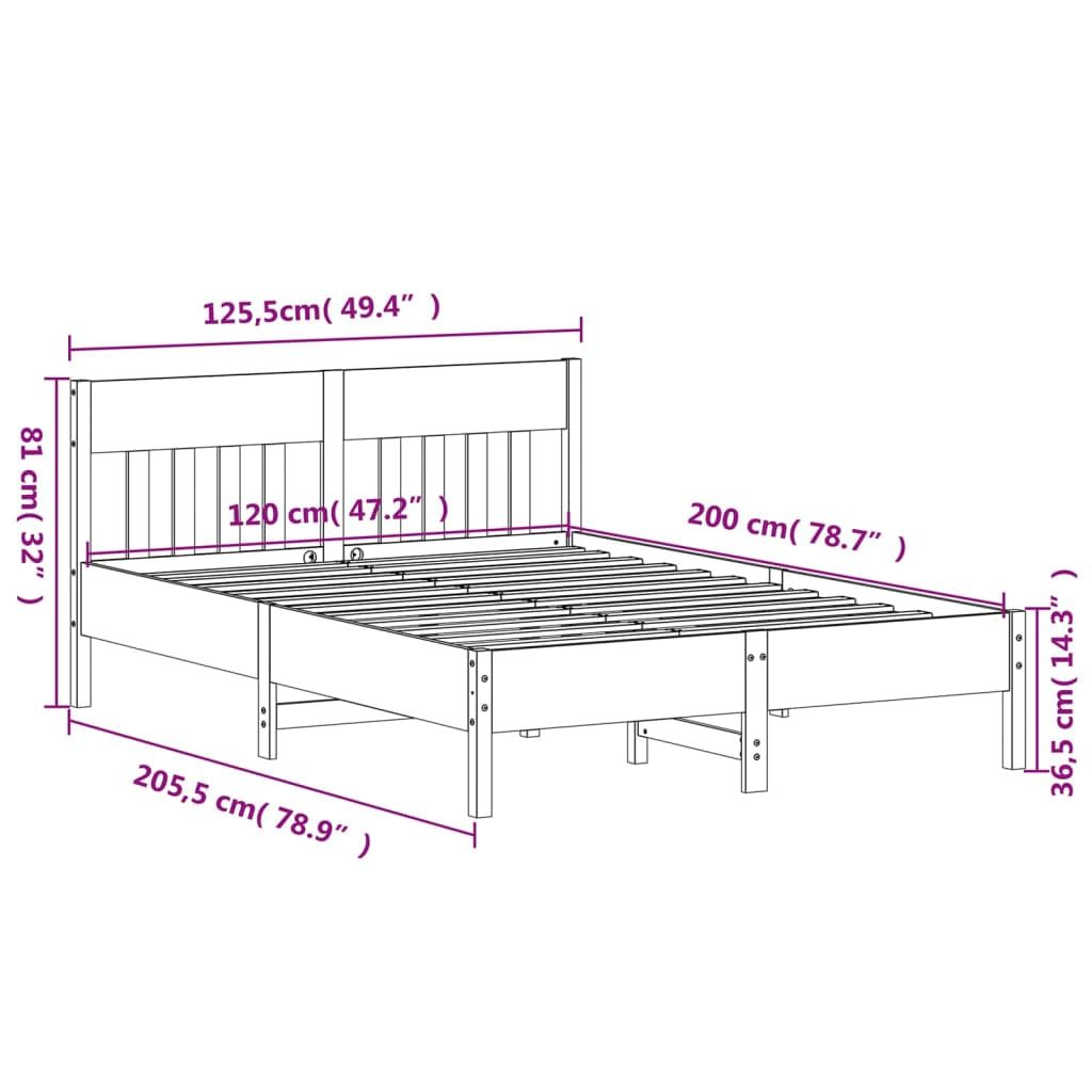 Bed Frame without Mattress White 120x200 cm Solid Wood Pine 842651
