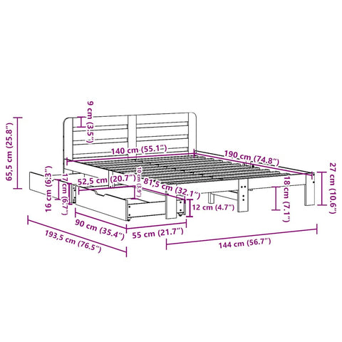 Get a better restful night's sleep from this bed frame! It makes a welcoming addition to any bedroom. Stable and long-lasting frame: Solid pinewood is known for its strength and durability. Its straight grains and distinctive knots contribute to its rustic charm.Slatted base for optimal support: The bed base is equipped with a slatted base for support and breathability for your mattress.Effortless manoeuvrability: This under-bed storage drawer features four wheels, providing smooth and effortless manoeuvrability for sliding in and out from beneath your bed.Stable and durable feet: This bedstead is supported by sturdy feet, ensuring stability, safety, and firmness.Versatile headboard: This panel bed comes with a headboard that provides excellent back support when you sit up in bed to read or watch TV, while also serving as a decorative element. Good to know:A mattress is not included with this bed. We do offer a various selection of mattresses. You can check our shop for a matching mattress.