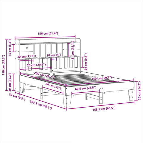 Get a better restful night's sleep from this bed frame! It makes a welcoming addition to any bedroom. Stable and long-lasting frame: Solid pinewood is known for its strength and durability. Its straight grains and distinctive knots contribute to its rustic charm.Slatted base for optimal support: The bed base is equipped with a slatted base for support and breathability for your mattress.Extra storage space: This sleek headboard features 6 convenient compartments and 2 drawers, offering ample storage space to keep all your nighttime essentials within easy reach. For convenience, the wooden bed has an extra space underneath to keep your storage boxes out of sight.Stable and durable feet: This bedstead is supported by sturdy feet, ensuring stability, safety, and firmness.Freestanding headboard: The freestanding headboard offers a hassle-free solution for effortless placement and repositioning without the need for wall installation. Good to know:A mattress is not included with this bed. We do offer a various selection of mattresses. You can check our shop for a matching mattress.