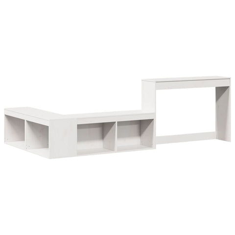 Get a better restful night's sleep from this bed frame! It makes a welcoming addition to any bedroom. Stable and long-lasting frame: Solid pinewood is known for its strength and durability. Its straight grains and distinctive knots contribute to its rustic charm.Slatted base for optimal support: The bed frame is equipped with a slatted base for support and breathability for your mattress.Spacious under-bed storage: This bed frame is designed with ample space underneath for storage boxes, baskets, drawers, and more.Multi-functional bedside cabinet: This versatile bedside cabinet integrates a storage unit with a desk, creating the perfect workspace and providing ample storage for keeping all your bedtime necessities easily accessible.Space saving: This L-shaped storage cabinet fits snugly against the bed, creating a partial enclosure to maximise bedroom space. It is an ideal choice for smaller or more confined areas. Good to know:A mattress is not included with this bed. We do offer a various selection of mattresses. You can check our shop for a matching mattress.