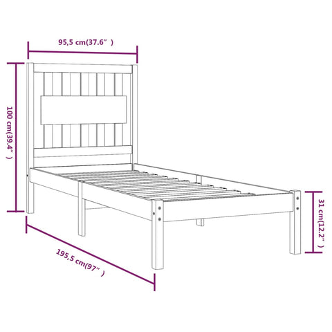 Bed Frame without Mattress White Solid Wood Single 3103899