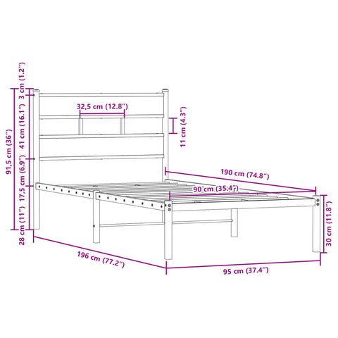 Bed Frame without Mattress with Headboard Brown Oak 90x190 cm Single 4017143