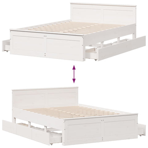 Get a better restful night's sleep from this bed frame! It makes a welcoming addition to any bedroom. Stable and long-lasting frame: Solid pinewood is known for its strength and durability. Its straight grains and distinctive knots contribute to its rustic charm.Slatted base for optimal support: The bed frame is equipped with a slatted base for support and breathability for your mattress.Stable and durable feet: This bed is supported by sturdy feet, ensuring stability, safety, and firmness.Functional headboard: The headboard of the wooden bed can keep your mattress in place. Also, the headboard provides you with excellent back support when you sit up in bed to read or watch TV.Storage function: This bed frame offers drawers for keeping your magazines, books, toys and other small items well-organised. Good to know:A mattress is not included with this bed. We do offer a various selection of mattresses. You can check our shop for a matching mattress.