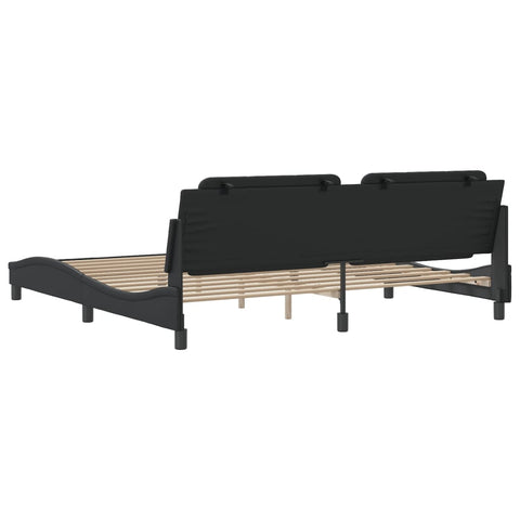 Get a better restful night's sleep from this bed frame with headboard! It makes a welcoming addition to any bedroom. Durable faux leather: Premium faux leather is a highly durable material. It is resistant to stain, making it easy to clean with a damp cloth. The smooth surface also gives a luxurious look and the beauty of real leather.Plywood slats: The plywood slats provide good weight distribution, ensuring that the mattress stays in place with every twist and turn of your body during sleep.Excellent support: The headboard pillow is stuffed with foam for ultra-soft and optimal comfort, providing you with excellent back support while you're sitting up in bed to read or watch TV.Convenient design: The cushion headboard has a zipper for easy installation.Waved side design: The waved look of the bed frame is stylish and sophisticated, adding a modern and elegant touch to your decor, making it the focal point of your bedroom. Good to know:A mattress is not included with this bed. We do offer a various selection of mattresses. You can check our shop for a matching mattress.