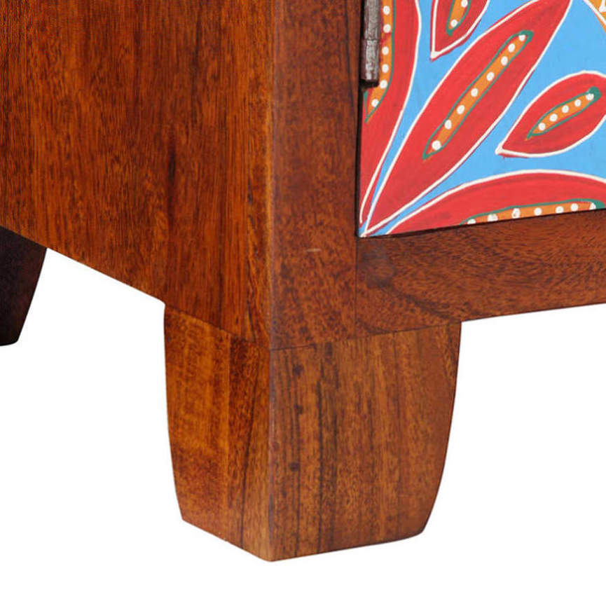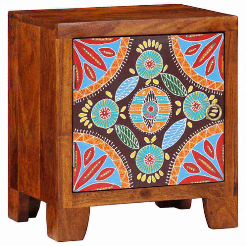 Introduce an air of charm into your existing room decor with this stylish bedside cabinet! Robust and stable material: Solid acacia wood is known for its strength and durability. Its diverse colours and unique grain patterns give it an attractive appearance. With good stability and resistance to weathering, it is ideal for crafting indoor and outdoor furniture.Ample storage space: The bedside nightstand provides ample storage space for magazines, books, glasses, and other bedtime essentials, keeping them organised and within reach.Wooden legs: The nightstand is supported by sturdy wooden legs, ensuring stability, safety, and firmness.Sturdy top: The sturdy top of the bedside stand is perfect for placing table lamps, alarm clocks, books, picture frames, small potted plants, decorations or other essentials.Easy to maintain: Thanks to its smooth surface, the bedside table is easy to clean with a damp cloth and requires less maintenance. Good to know:Each item is unique with variations in colours and grains. The delivery is random, ensuring the exclusivity and individuality of your product.