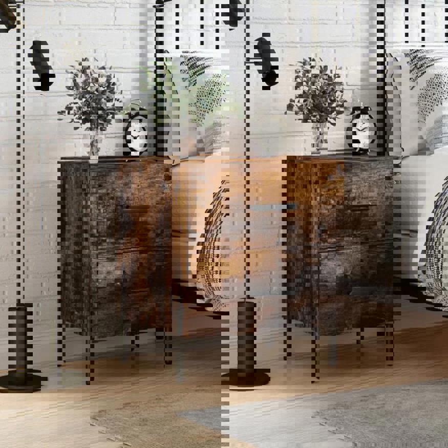 Introduce an air of modern charm to your interior with this bedside cabinet! Durable material: The engineered wood is of exceptional quality with smooth surface and also features strength, stability and resistance to moisture. Spacious storage: The bedside cabinet has drawers, providing spacious storage space to keep your books, multimedia appliances and other items within reach.Displaying function: You can also place your favourite photos, decorations or flowers on top of the side cabinet to enrich your life. Metal feet: The metal feet add a calm style to your interior while ensuring stability.