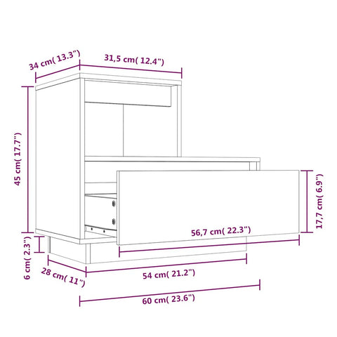 Bedside Cabinet White 60x34x51 cm Solid Wood Pine 814376