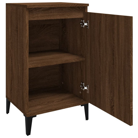 These trendy bedside cabinets, featuring a sleek and classic design, are meant to upgrade your interior to the next level. Durable material: The engineered wood is of exceptional quality with smooth surface and also features strength, stability and resistance to moisture.Ample storage space: The nightstand has 2 compartments with a door, providing ample space to keep your magazines, books, remote controls and other small items well organised and within reach.Metal legs: The metal legs add a modern and calm style to your interior while ensuring stability.Sturdy top: The sturdy top of the side table is ideal for displaying decorative objects, photo frames and potted plants.Easy-to-clean surface: The side cabinet is easy to clean with a damp cloth. Warning:To prevent it being overturned, this product must be used with the provided wall attachment device. Good to know:To make assembly as easy as possible, each product is delivered with a manual.
