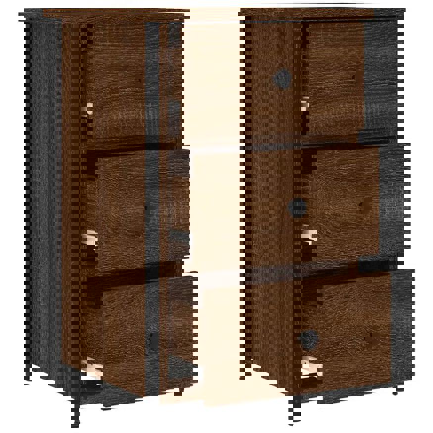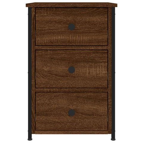 These bedside cabinets with an industrial style make a timeless addition to your interior decor. Durable material: The engineered wood is of exceptional quality with smooth surface and also features strength, stability and resistance to moisture.Sturdy frame: The iron frame of the bedside table ensures sturdiness and stability.Ample storage space: Designed with 3 drawers, the side table offers ample storage space for keeping your various daily essentials well-organised and within easy reach.Adjustable feet: The side cabinet is equipped with 4 adjustable feet that can protect your floor from scratches and keep it stable on the uneven floor.Displaying function: You can place your favourite photos, decorations, or flowers on top of the nightstand to enrich your life. Warning:To prevent it being overturned, this product must be used with the provided wall attachment device.