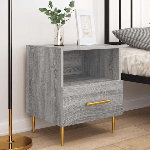 Introduce an air of modern charm to your interior with these bedside cabinets! Durable material: The engineered wood is of exceptional quality with smooth surface and also features strength, stability and resistance to moisture. Spacious storage space: The bedside cabinet has a compartment and a drawer, providing spacious storage space to keep your books, multimedia appliances and other items within reach. Displaying function: You can also place your favourite photos, decorations or flowers on top of the side cabinet to enrich your life. Metal feet: The metal feet add a calm style to your interior while ensuring stability.