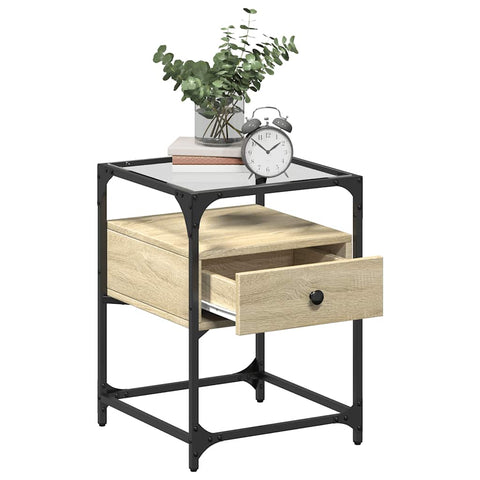 With a stylish design, these bedside cabinets fit easily into your bedroom or living room and add a timeless charm to your interior. Durable material: The engineered wood is of exceptional quality with a smooth surface and features strength, stability and resistance to moisture.Robust and stable frame: Engineered Wood is an exceptionally hard and strong material. It offers sturdiness and stability. Glass top: The top of the side table provides a visible and ample surface to place snacks, drinks, vases, fruit bowls, or other decorative items.Ample storage space: The bedside cabinet features a shelf, helping keep your essentials close at hand.Easy to clean: This bedside cabinet is moisture-resistant and easy to clean to keep it looking new every day. Warning:To prevent it from tipping over, this product must be used with the provided wall attachment device.