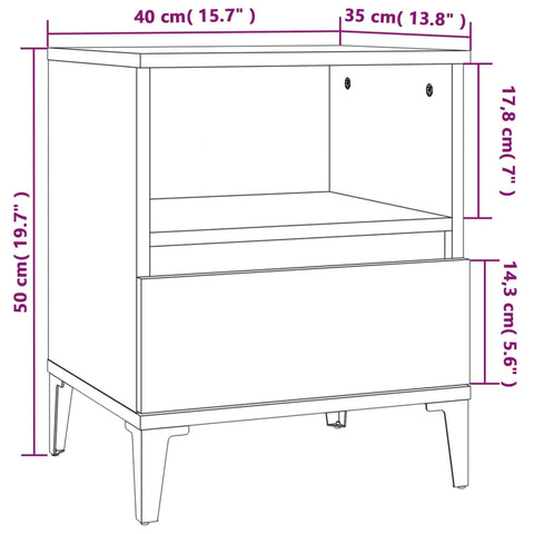 These bedside cabinets with an elegant design make a timeless addition to your interior decor. Durable material: The engineered wood is of exceptional quality with smooth surface and also features strength, stability and resistance to moisture. Ample storage space: The bedside table is designed with a compartment and a drawer to keep things organised and within easy reach. Metal feet: The metal feet add an industrial style to your interior while ensuring stability.Stable and sturdy table top: The top of the side cabinet is perfect for displaying your decorative items, picture frames and potted plants. Note:Each product comes with an assembly manual in the box for easy assembly.