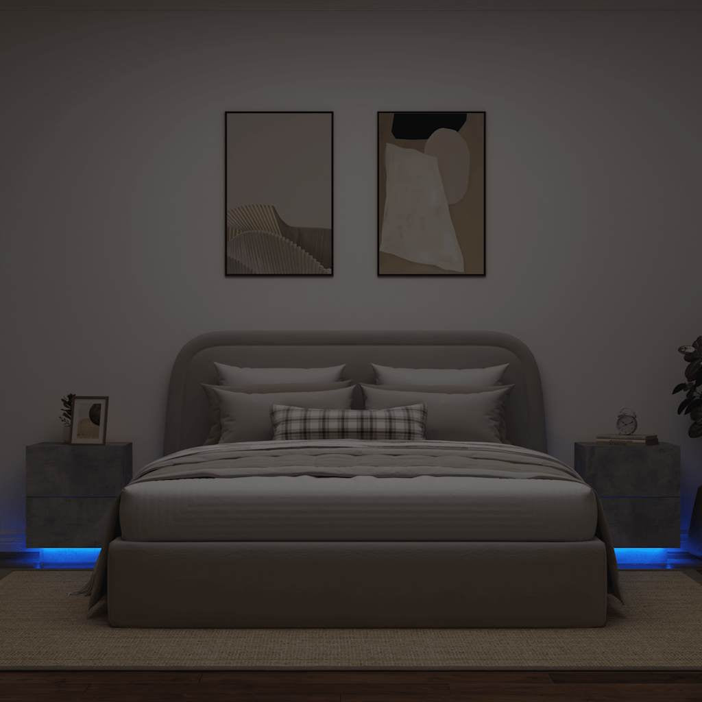 Bedside Cabinets with LED Lights 2 pcs Concrete Grey Engineered Wood 836742