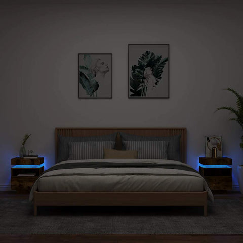 Bedside Cabinets with LED Lights 2 pcs Smoked Oak 40x39x48.5 cm 836793