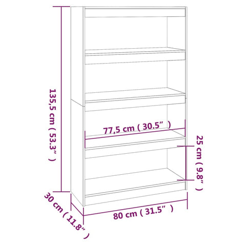 Book Cabinet/Room Divider White 80x30x135.5 cm Solid Wood Pine 808194
