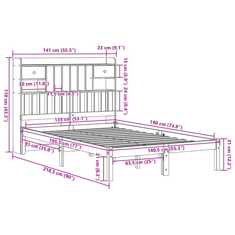 Bookcase Bed without Mattress 135x190 cm Double Solid Wood Pine 3321616