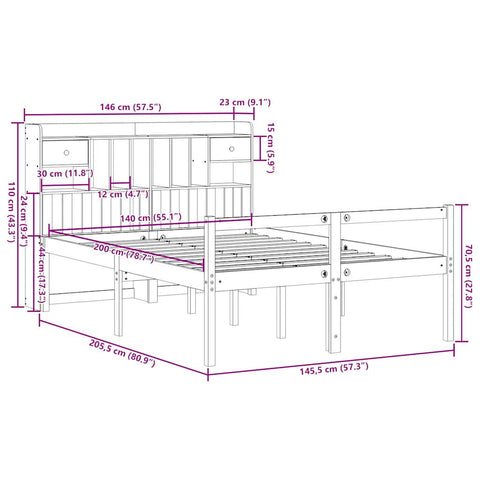 Bookcase Bed without Mattress 140x200 cm Solid Wood Pine 3322055