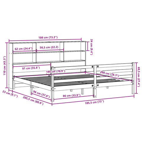 Bookcase Bed without Mattress 180x200 cm Super King Solid Wood Pine 3321905