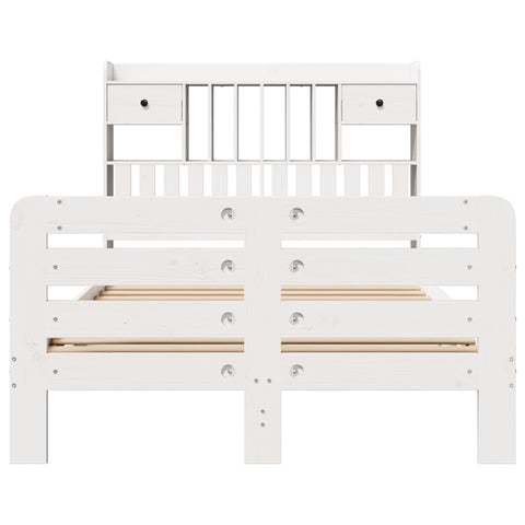 Bookcase Bed without Mattress White 135x190 cm Double Solid Wood Pine 3309987