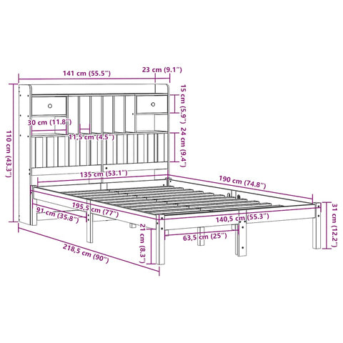 Get a better restful night's sleep from this bookcase bed! It makes a welcoming addition to any bedroom. Stable and long-lasting frame: Solid pinewood is known for its strength and durability. Its straight grains and distinctive knots contribute to its rustic charm.Slatted base for optimal support: The bed frame is equipped with a slatted base for support and breathability for your mattress.Ample storage space: This bookcase headboard offers ample storage space to keep books, decorative items, or personal belongings within easy reach, reducing clutter in the bedroom.Space saving: This headboard is a space-saving option that can replace the need for a bedside table, helping maximise your bedroom space, and making it ideal for small or limited spaces. Good to know:A mattress is not included with this bed. We do offer a various selection of mattresses. You can check our shop for a matching mattress.