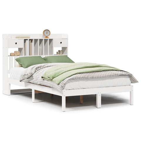 Bookcase Bed without Mattress White 135x190 cm Double Solid Wood Pine 3321617